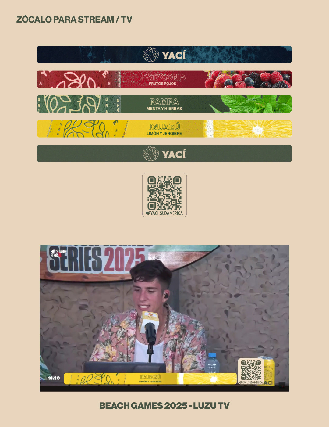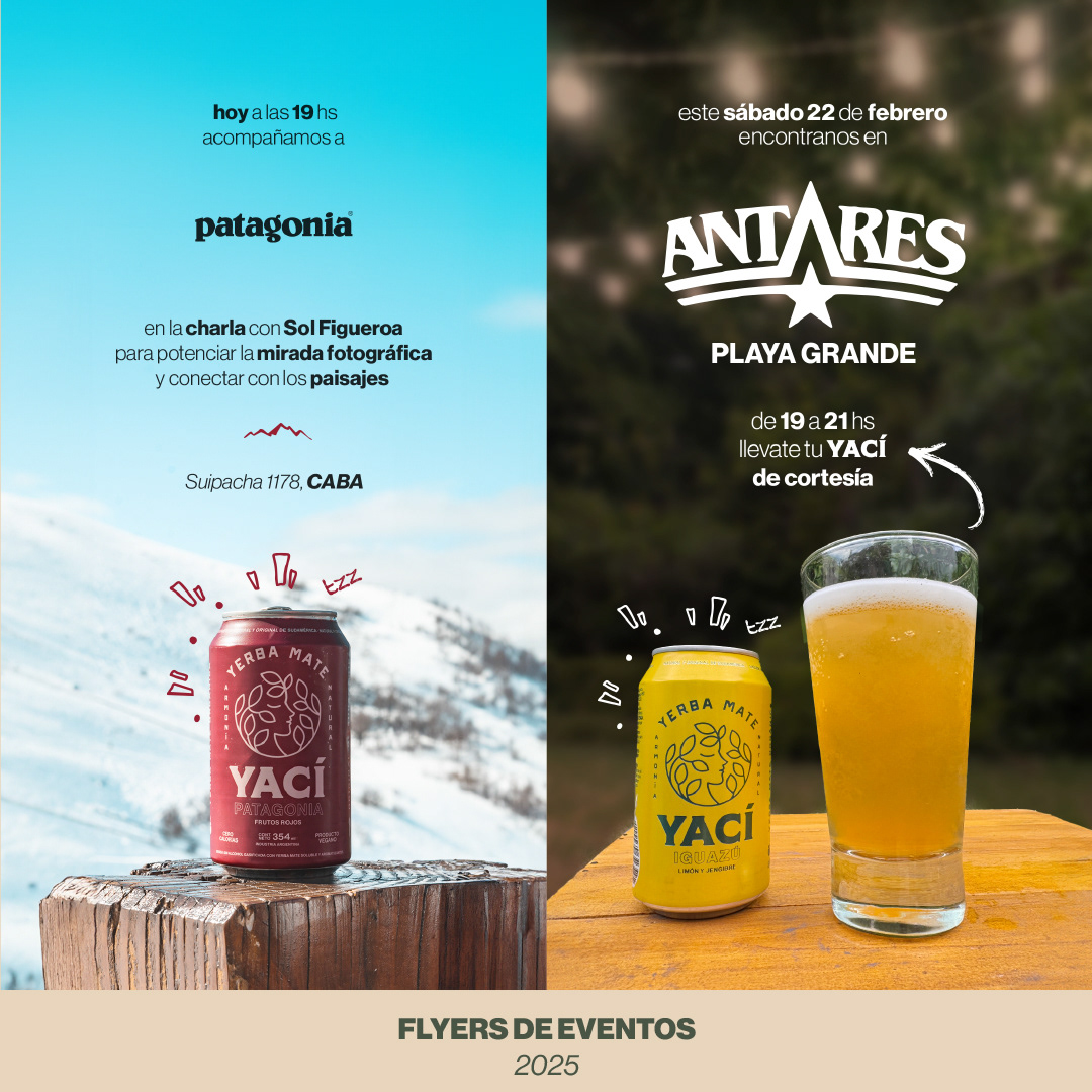 YACÍ Sudamérica is a growing organic yerba mate based natural drink company where I was the Lead/Senior Designer. From naming to adjusting of label files under Ball International’s parameters for massive production. Project proposals and presentations, motion graphics, image corrections, video editing, creative thinking, animated banner for streaming channels, flyers, posters and much more.